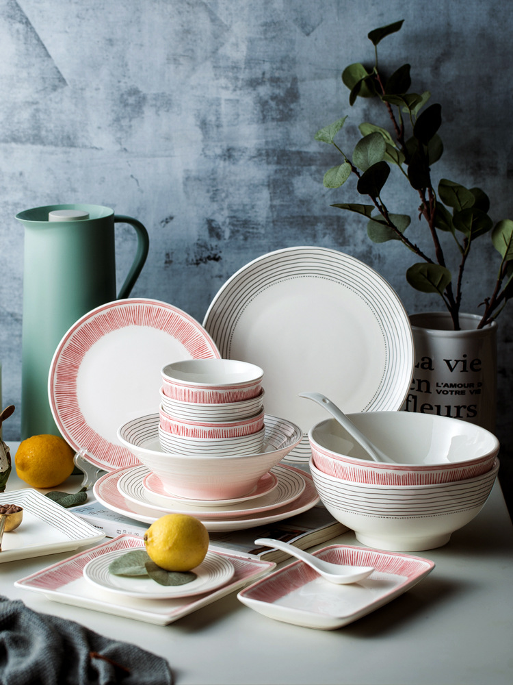 The pottery and porcelain plate that contracted can bear looking, tie-in and extremely brief black or red line design, the dish of boreal Europe style, deserve to go up delicious and delicious food, can make a beautiful scenery on table not only, still can add a bit of fun for household life, bring different life fun.